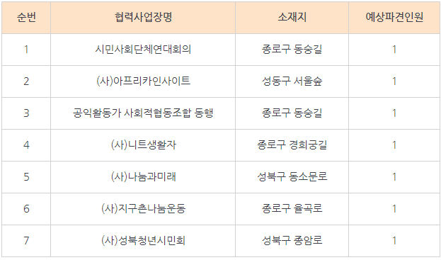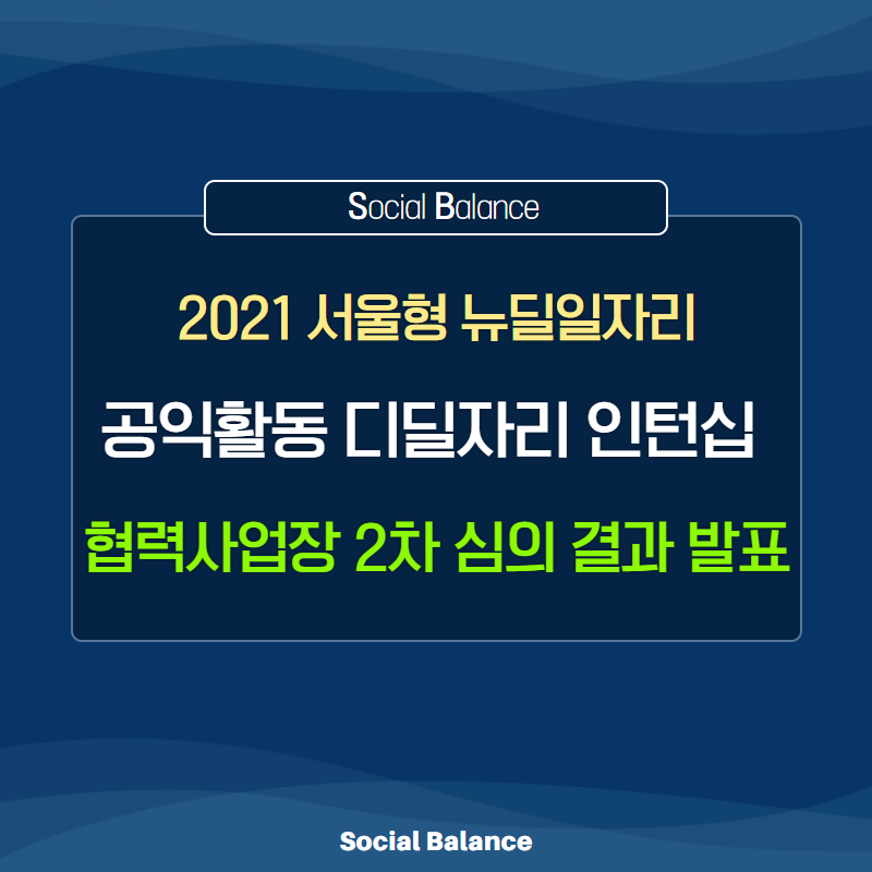 2021년 서울형 뉴딜일자리 「공익활동 디딜자리 인턴십」 에 지원해주신 협력사업장님께 감사드립니다.